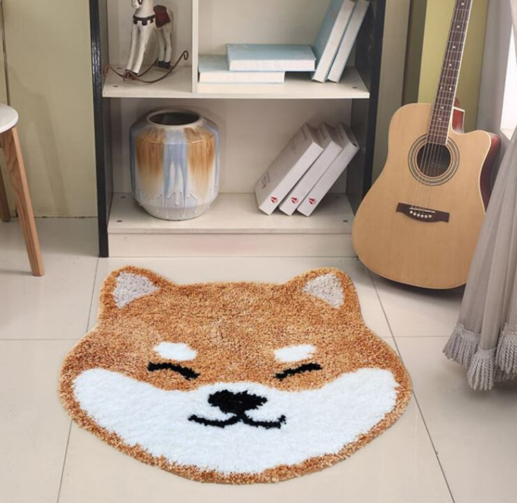 韓国雑貨 床足マット ラグ 柴犬デザイン 滑り止め 癒し かわいい