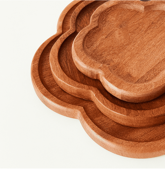 まずはこの花型ウッドトレイで、毎日の空間を心地よく彩ってみましょう。