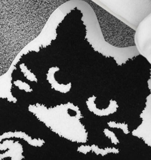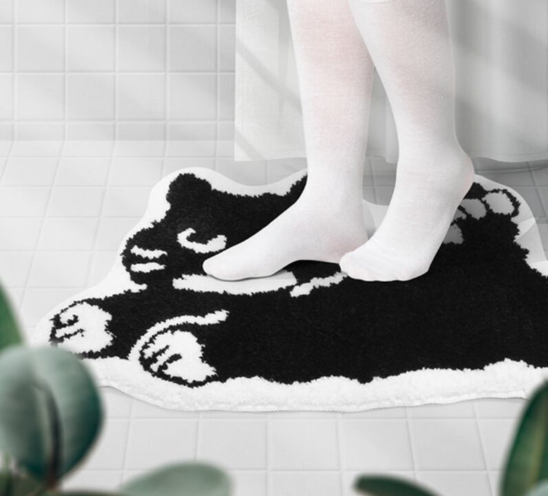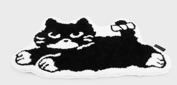 韓国雑貨 床マットラグ 黒ネコ リビング 浴室 感性癒し かわいい