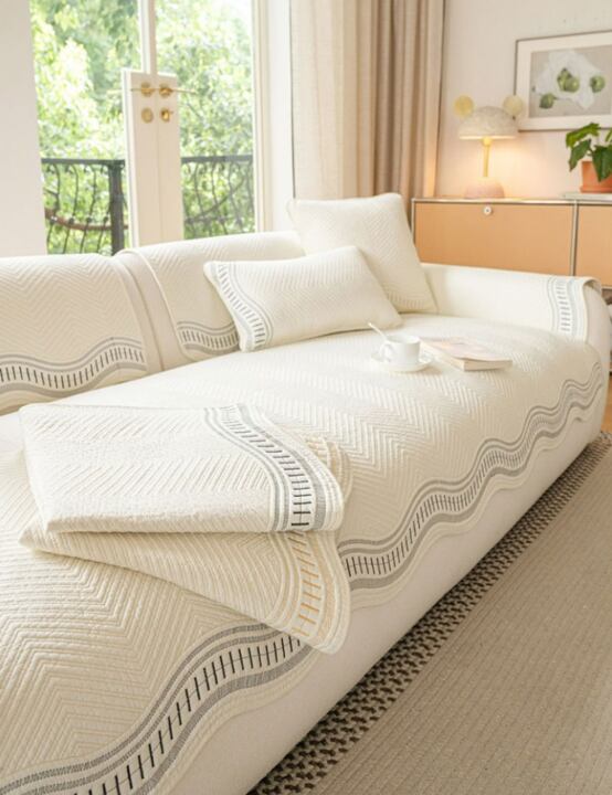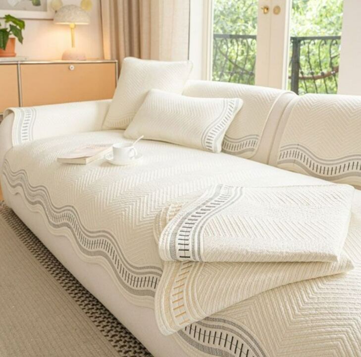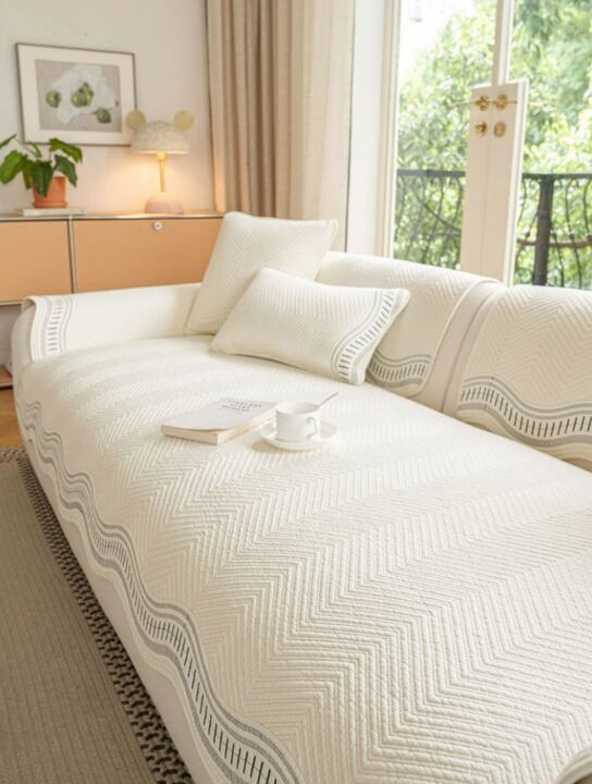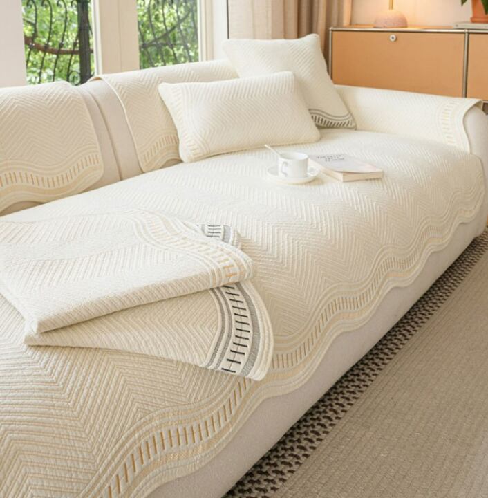 ウェーブ型のデザインが美しい、3人掛け用のソファカバーパッドです。
