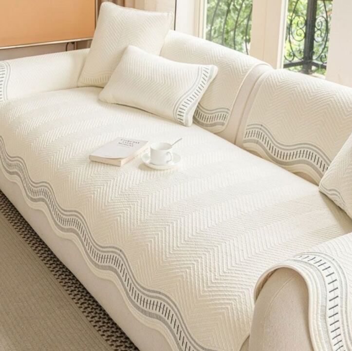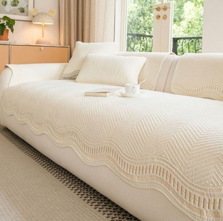 韓国雑貨 ソファカバーパッド 3人用 ウェーブ型 ソフト おしゃれ