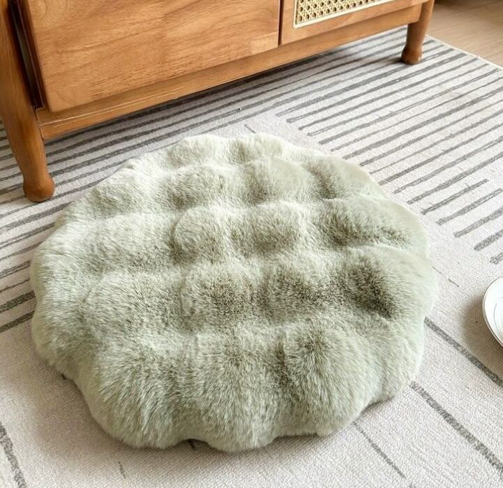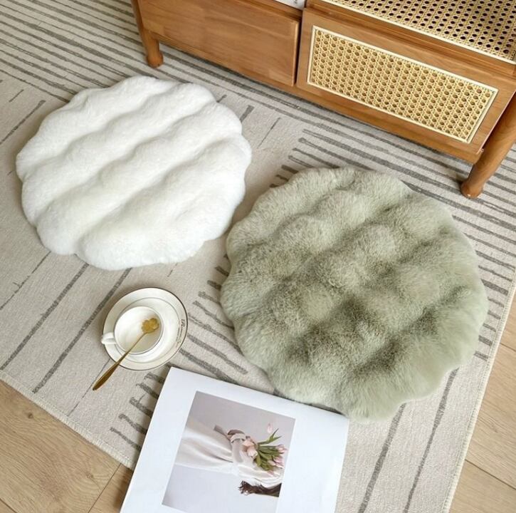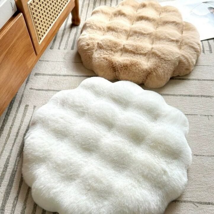 雲のようにふわふわな感触が魅力の、バブルファー素材の円形座布団です。