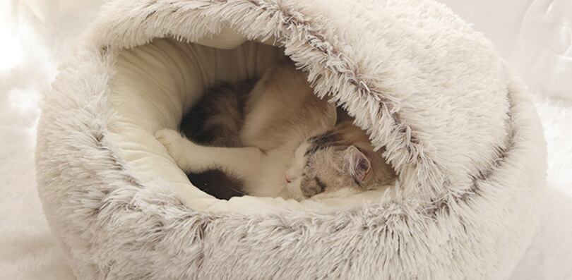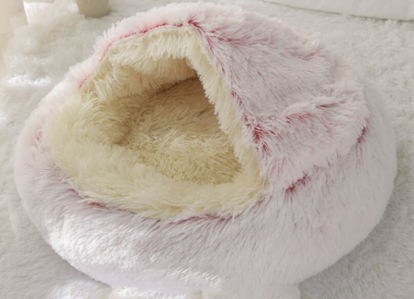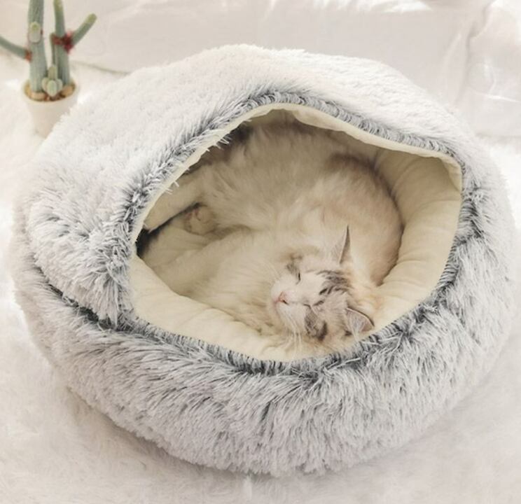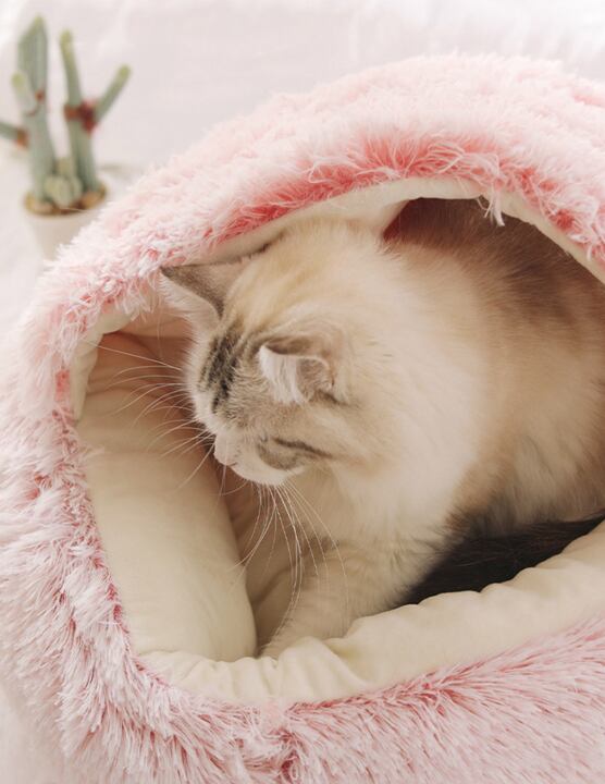 犬猫が安心してくつろげる、洞窟型デザインのふかふかペットクッションです。