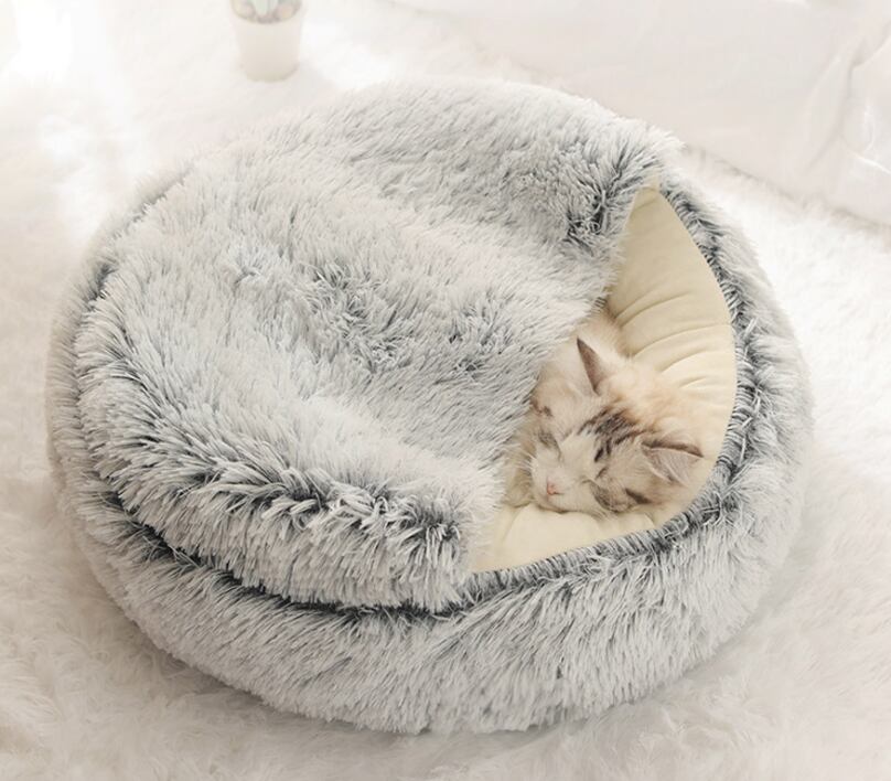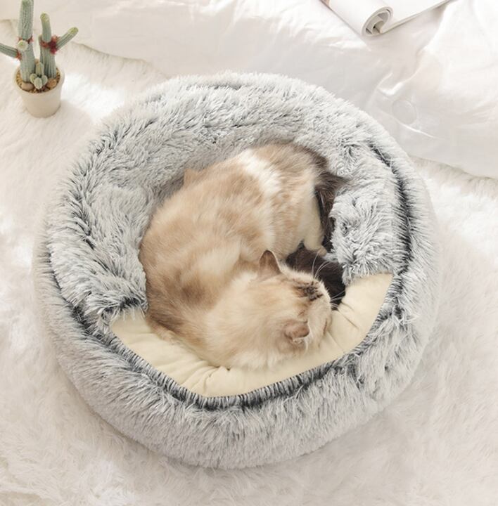 犬猫が安心してくつろげる、洞窟型デザインのふかふかペットクッションです。