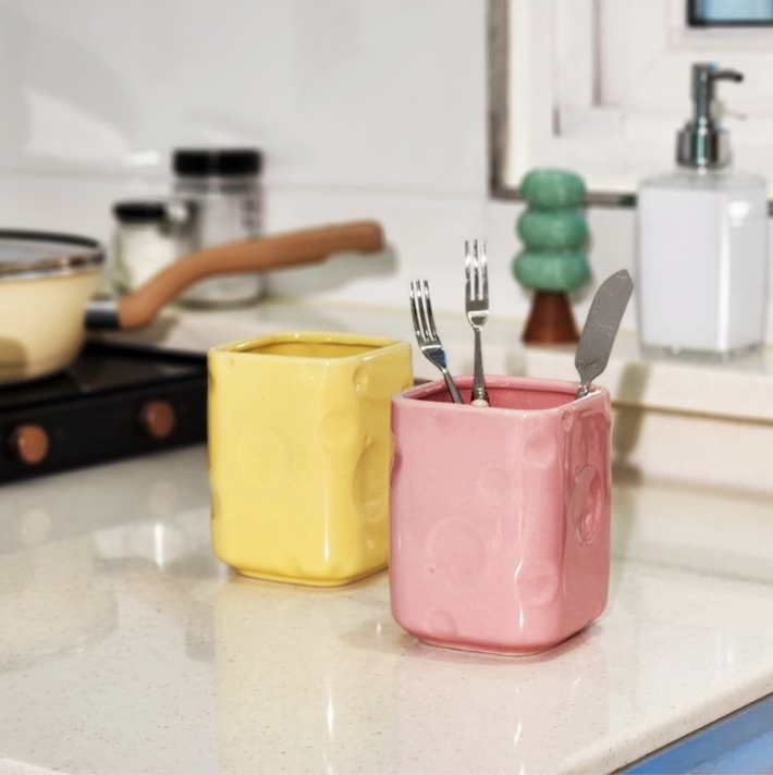 チーズ型のユニークなデザインとパステルカラーが、インテリアに遊び心をプラスします。