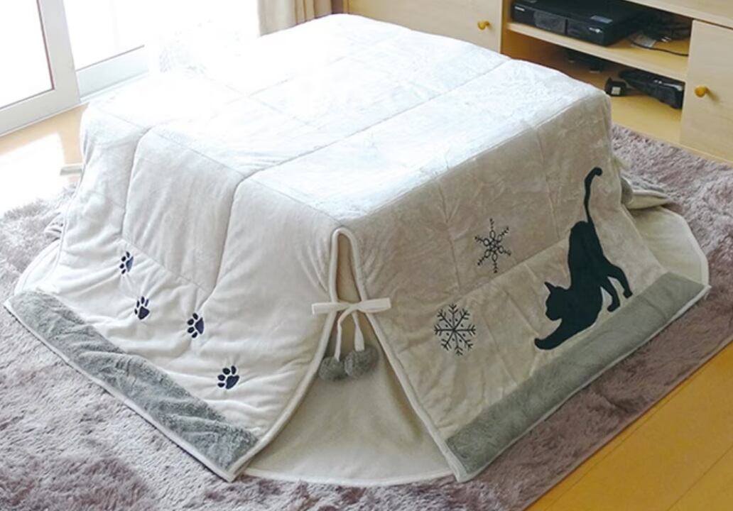 この猫柄こたつ布団で、大切な家族やペットと心地よい時間を過ごしましょう。