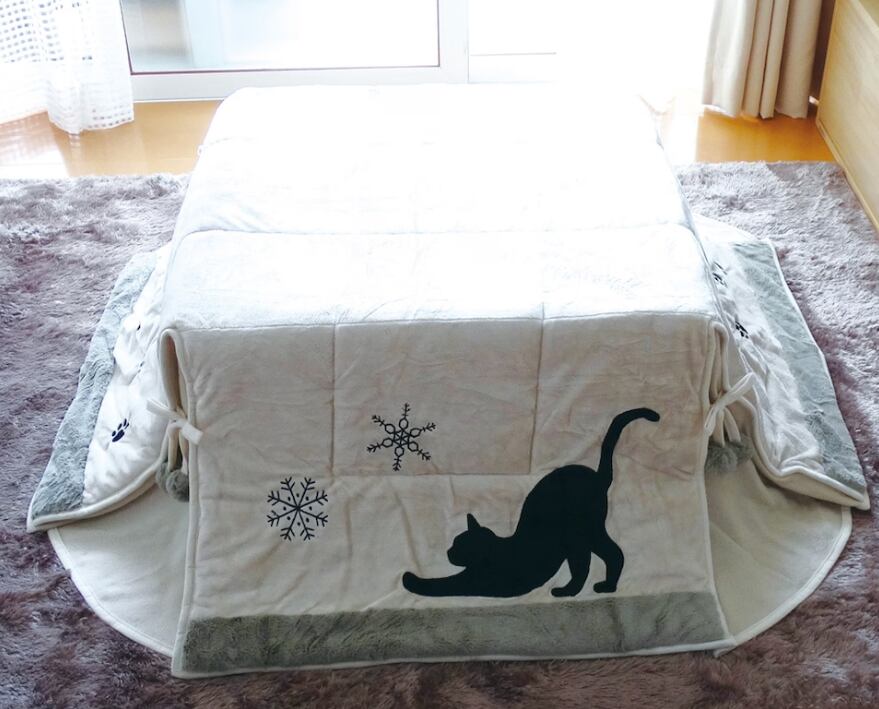 猫柄がかわいいデザインの正方形こたつテーブル布団です。