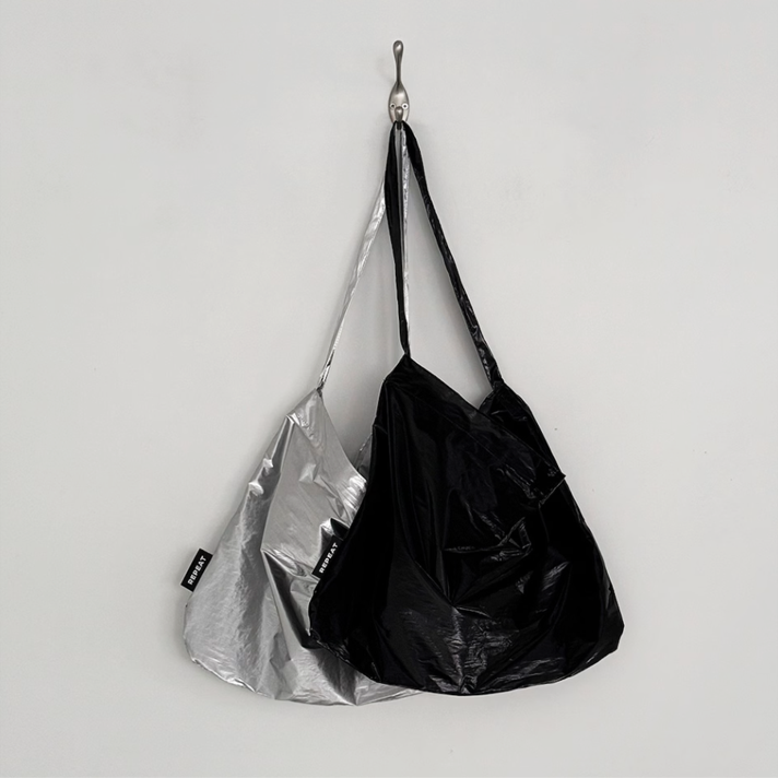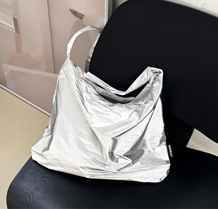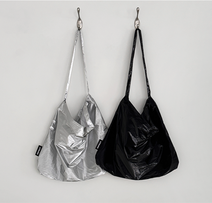 韓国雑貨 ショルダーバッグ エコバッグ 光沢 おしゃれ 肩掛け 2カラー