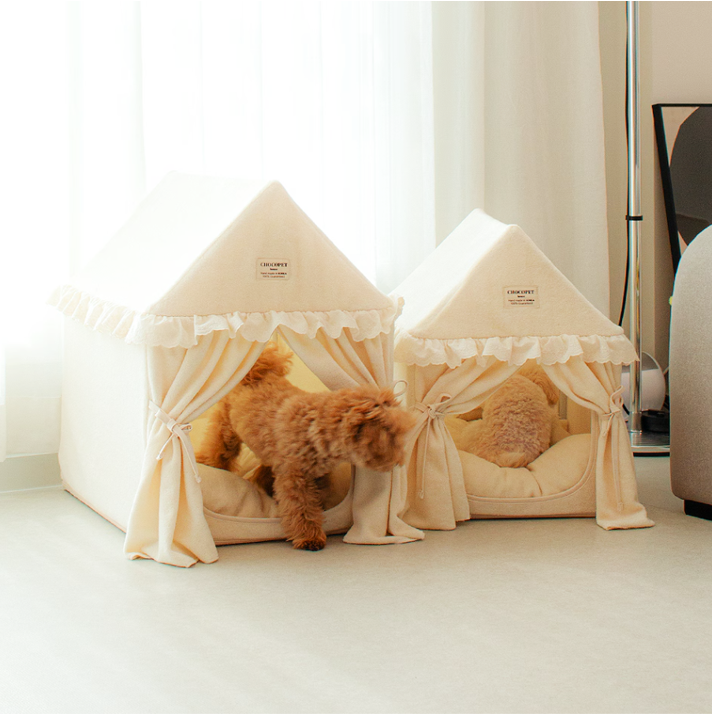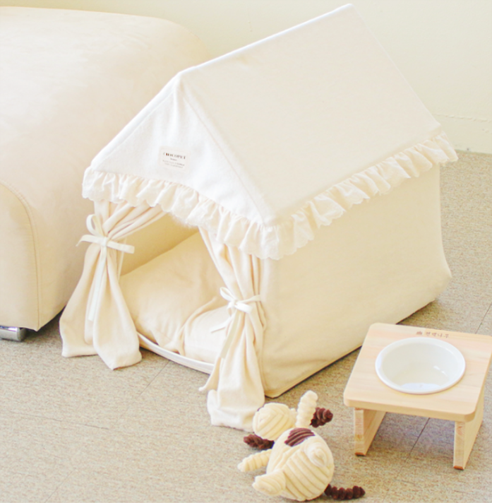韓国雑貨 ペットハウス クッション付き カーテン 犬猫 おしゃれ Lサイズ
