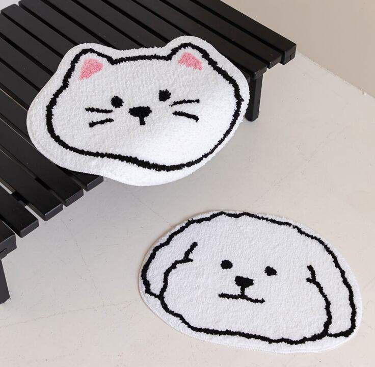 ポイント床マットは、犬と猫のかわいいデザインが魅力のインテリアマットです。