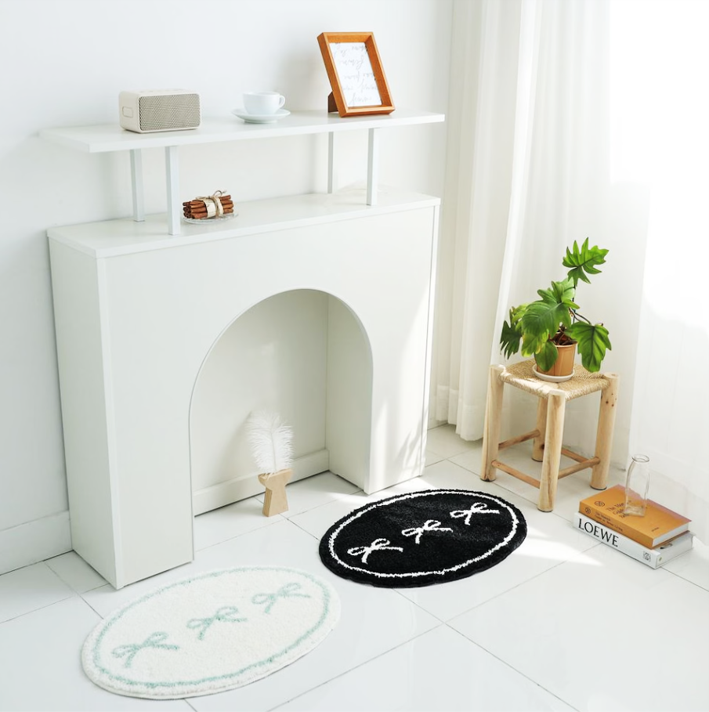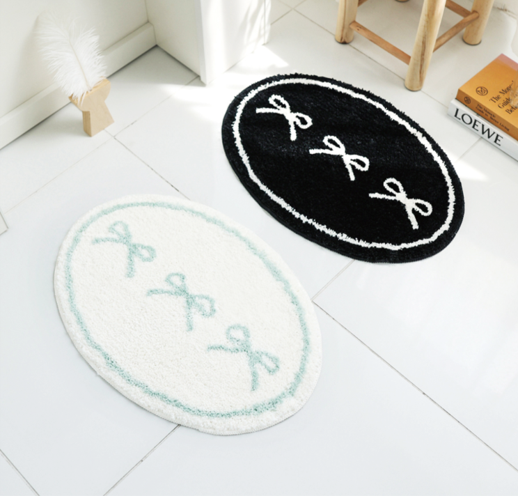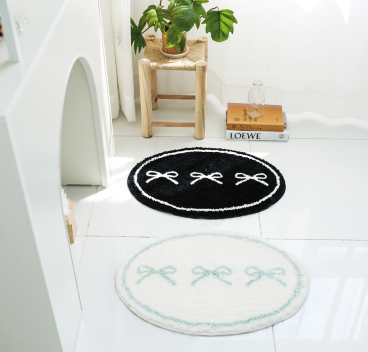 韓国雑貨 リボンマット ソフトラグ ラウンド かわいい リビング 2カラー