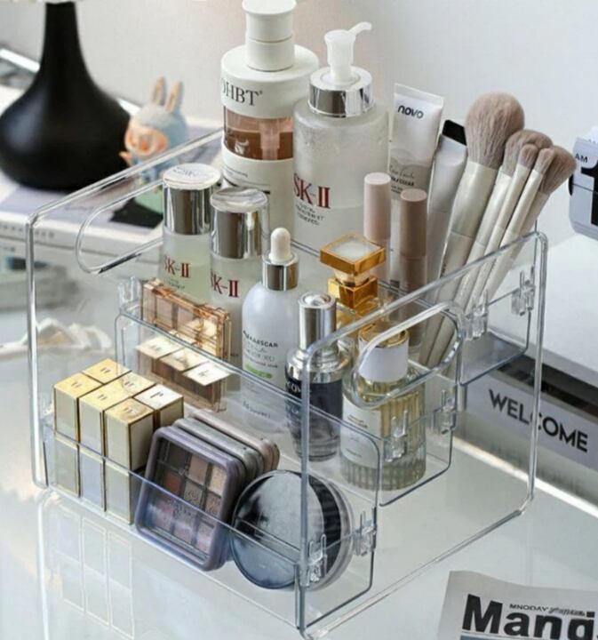 韓国雑貨 3段小物トレイ 持ち手付き 化粧品 香水 透明 おしゃれ