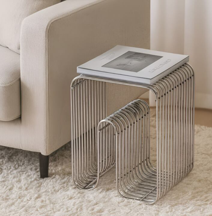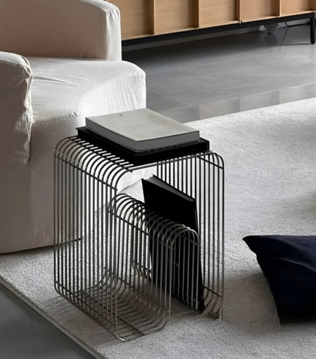 曲線ワイヤーテーブルは、モダンで洗練されたデザインが魅力の多用途収納テーブルです。