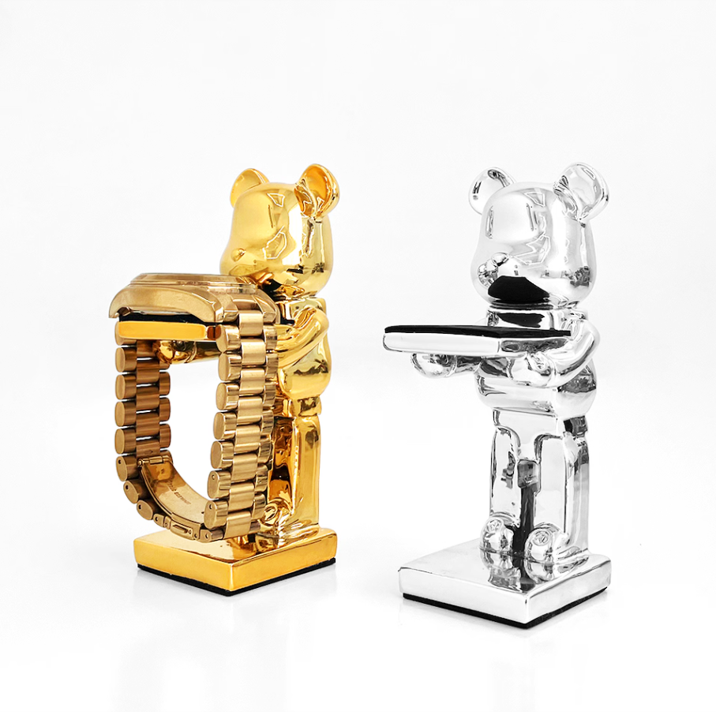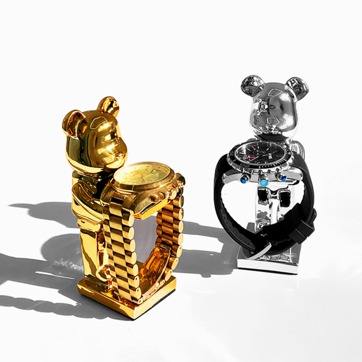 スタイリッシュなクマのオブジェが特徴の高級感ある時計スタンドです。