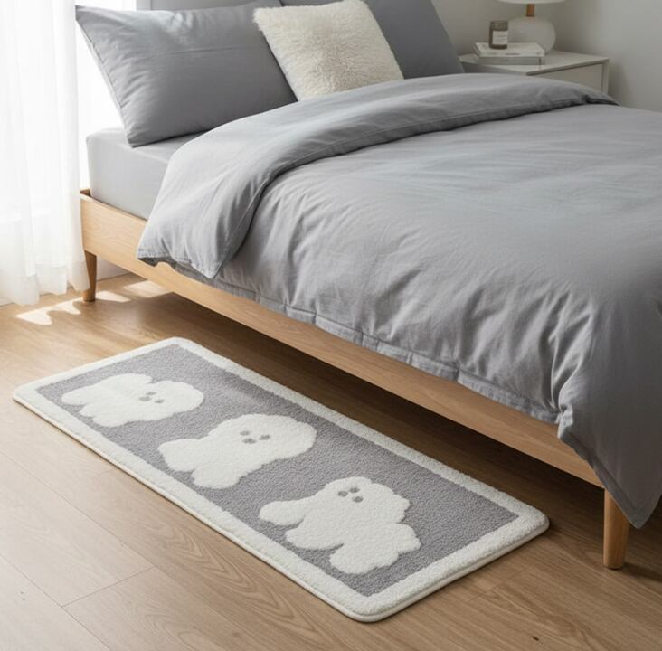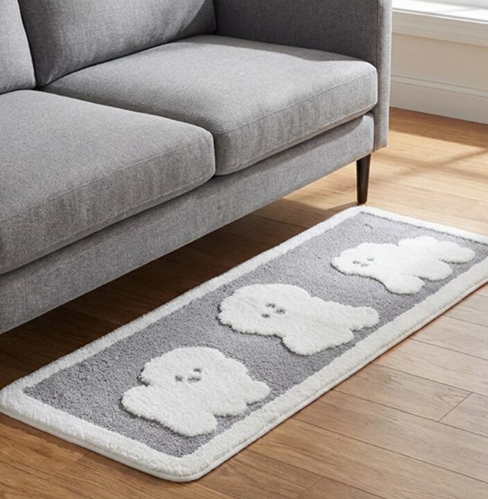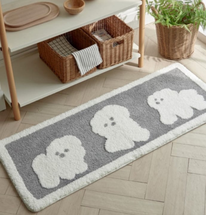 イヌ柄キッチンマットは、かわいらしいデザインと実用性を兼ね備えた多用途マットです。