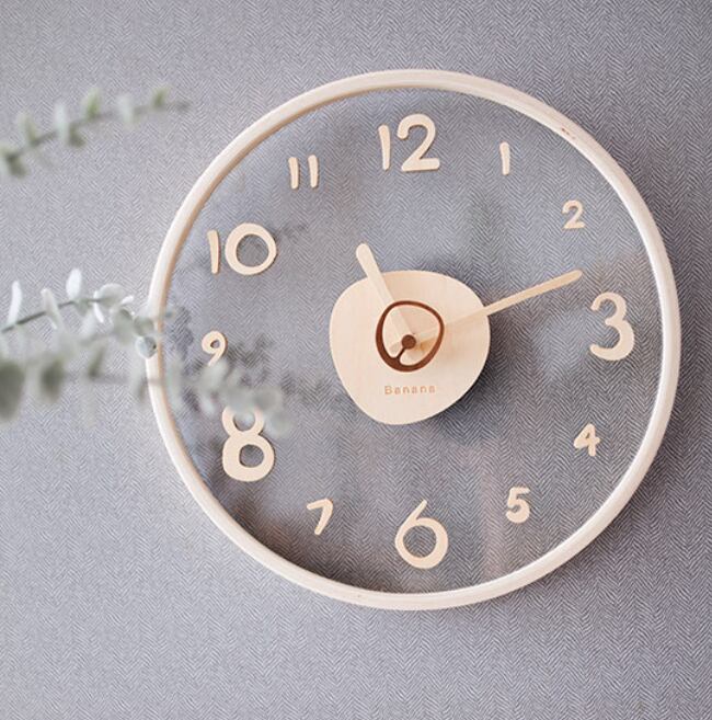韓国雑貨 無音壁掛け時計 透明 丸みフォント かわいい おしゃれ