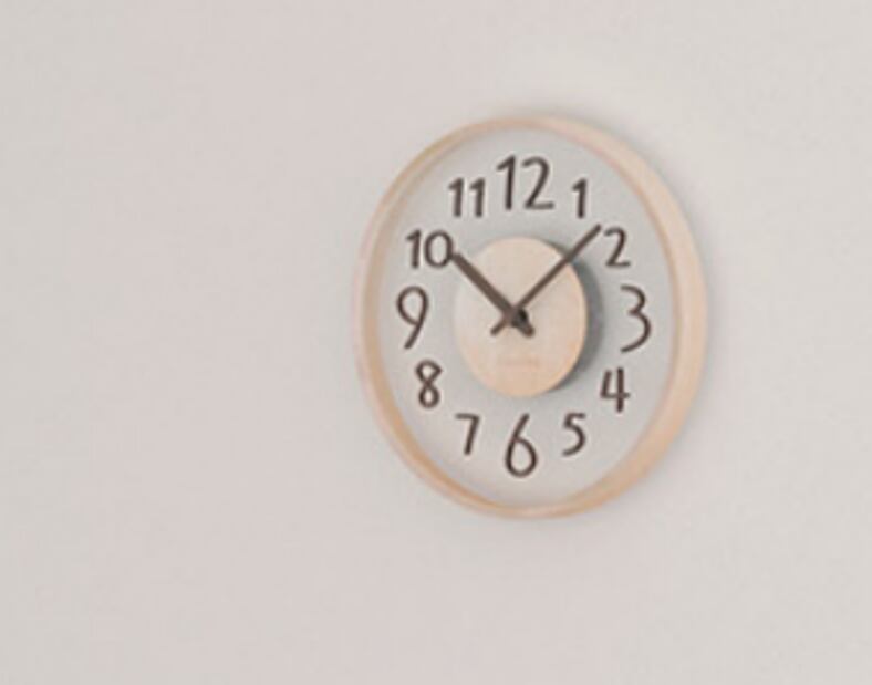 ・透明盤の軽やかデザイン:壁の色が透けて見える透明盤が、圧迫感のないすっきりした印象を演出。