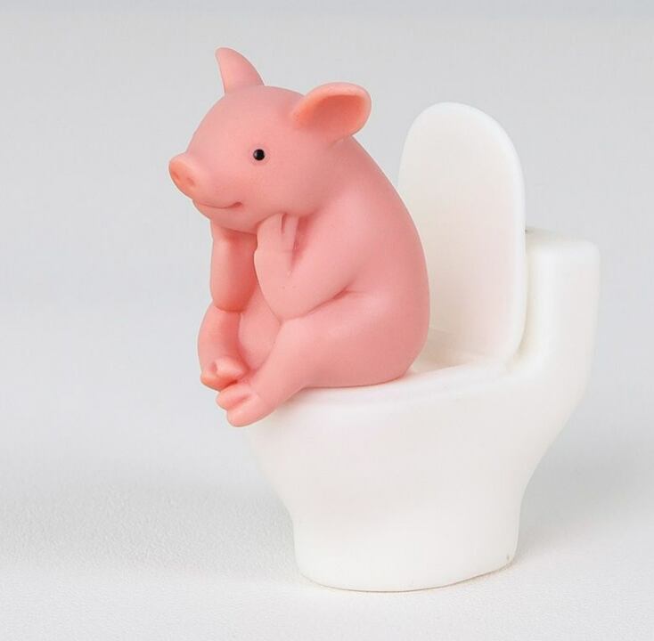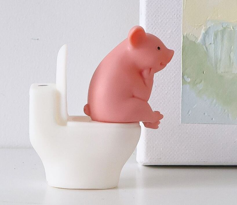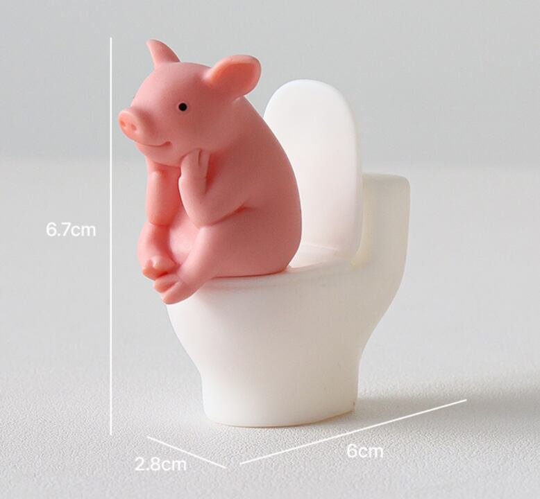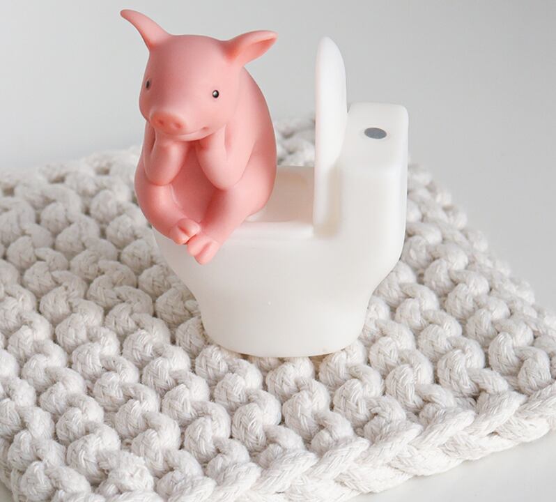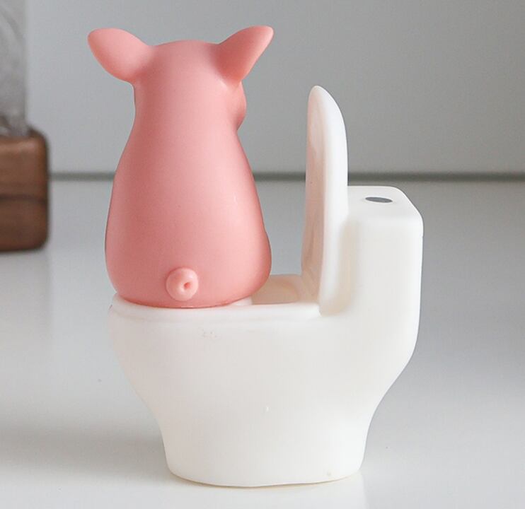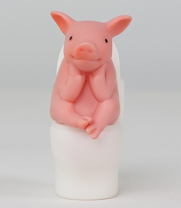 ・ユニークでかわいいデザイン:便器に座るブタの姿が遊び心をくすぐり、空間に癒しをプラスする。