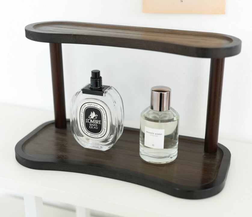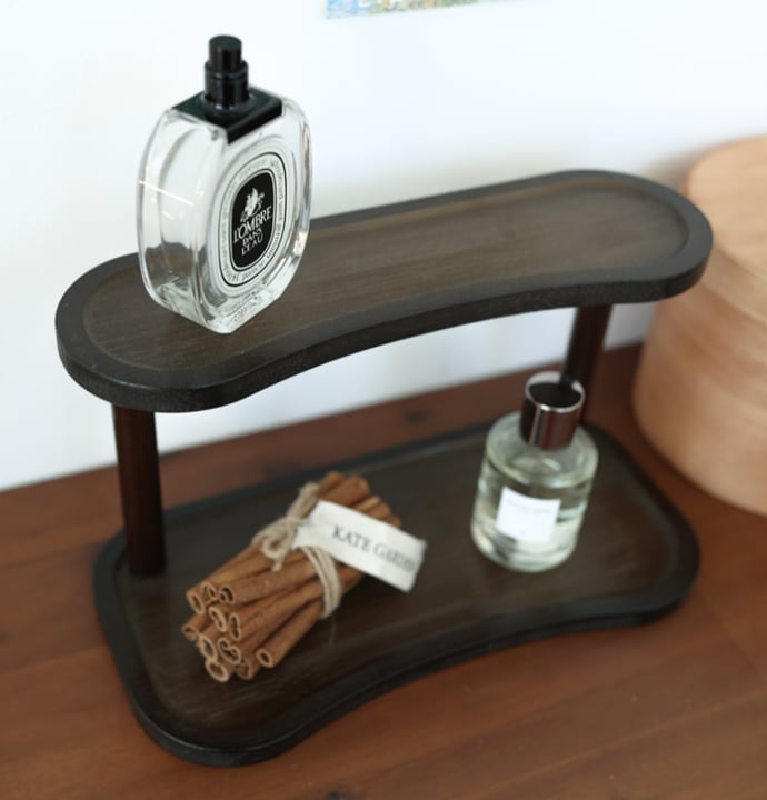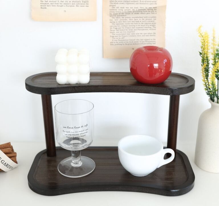 木製の2段小物トレイ棚は、卓上の整理とディスプレイを同時に叶える便利な収納アイテムです。