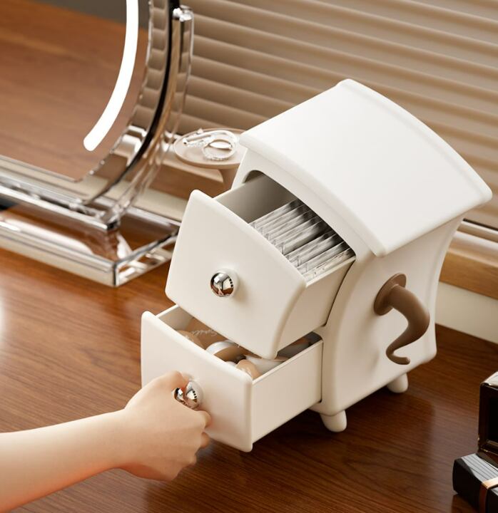 この2段トレイオブジェなら、かわいさと実用性を両立しながら、卓上をすっきり整えられます。