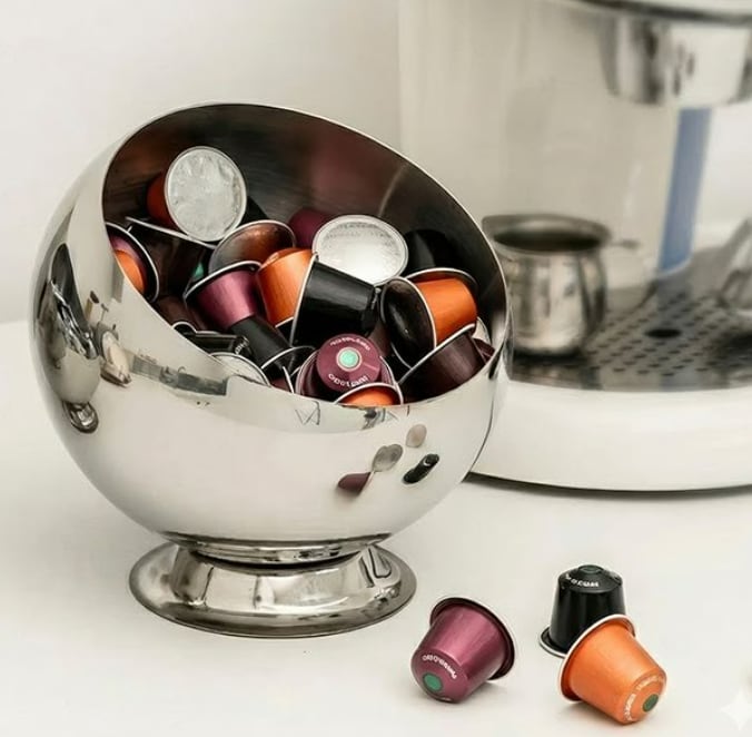 コーヒーカプセルやお菓子をスタイリッシュに収納できる、モダンデザインのカプセル収納ボウルです。