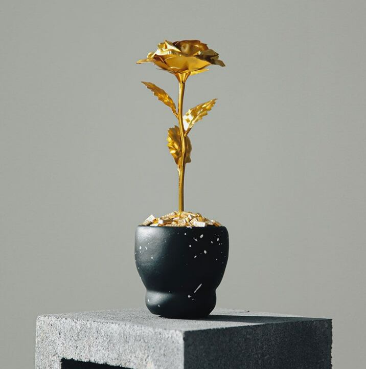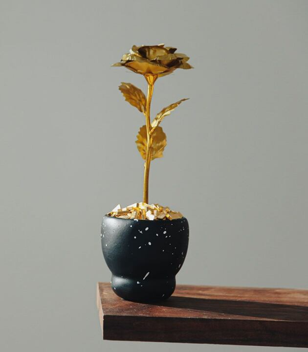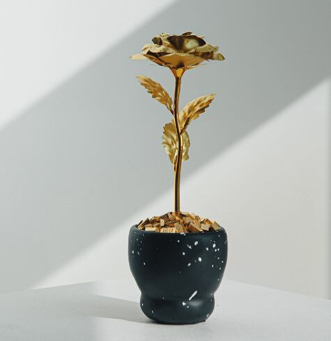 高級感あふれるバラ造花とモダンな植木鉢を組み合わせた、鑑賞用オブジェです。