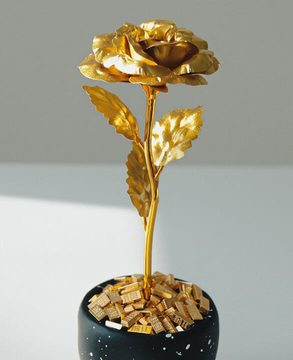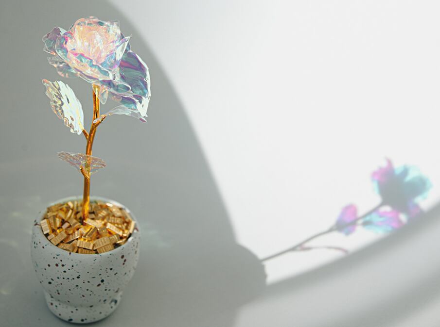 ・高級感のあるバラ造花: ゴールドやオーロラの輝きが美しく、空間に上質な雰囲気を与えます。