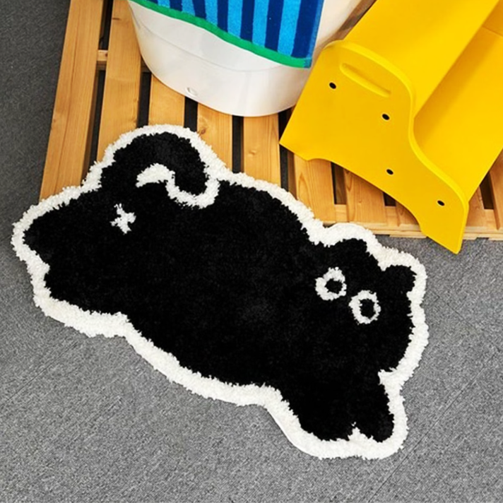 ふっくらした黒猫デザインが魅力のかわいい多用途マットです。