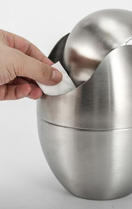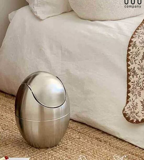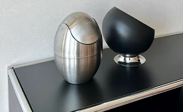 卵型フォルムが美しい、卓上・床置きどちらにも使える高級感あるミニゴミ箱です。