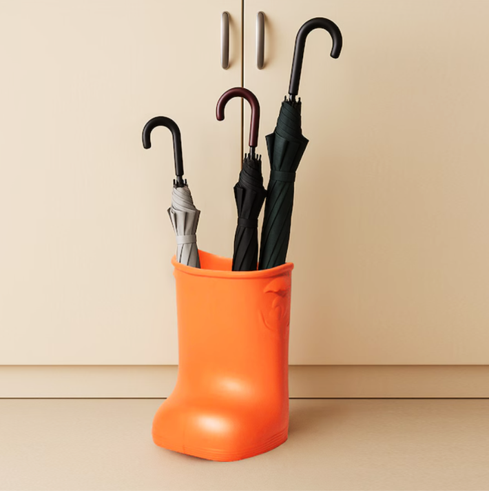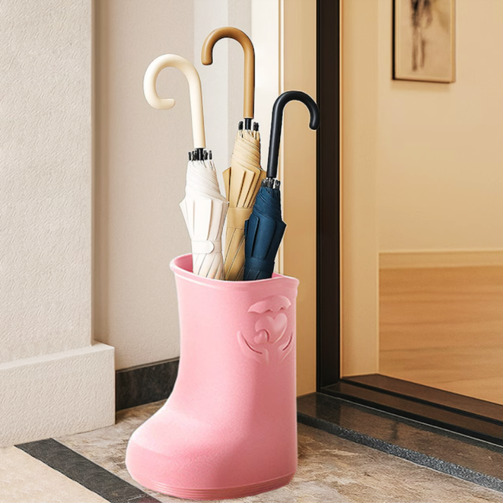 長靴型のかわいい傘立ては、玄関やベランダ、オフィスなど幅広い場所で使える多用途デザインです。