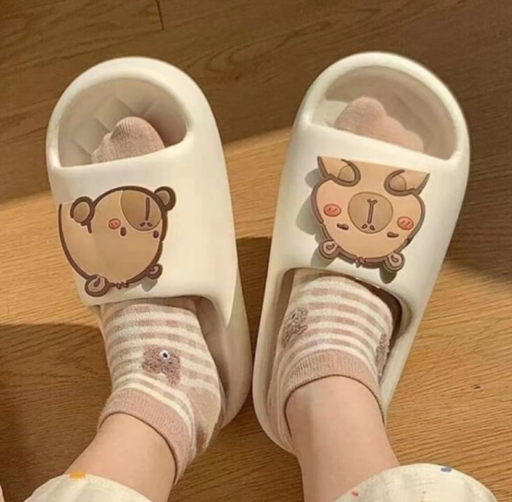 ・かわいいカピバラデザイン:癒し系デザインが足元を彩り、気分が上がる室内履きとして人気です。