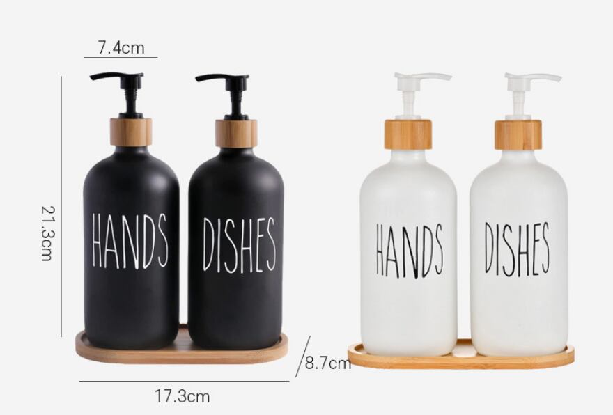 ・統一感あるデザイン:HANDSとDISHのロゴ入りボトルが、キッチンや洗面台をスタイリッシュに演出します。