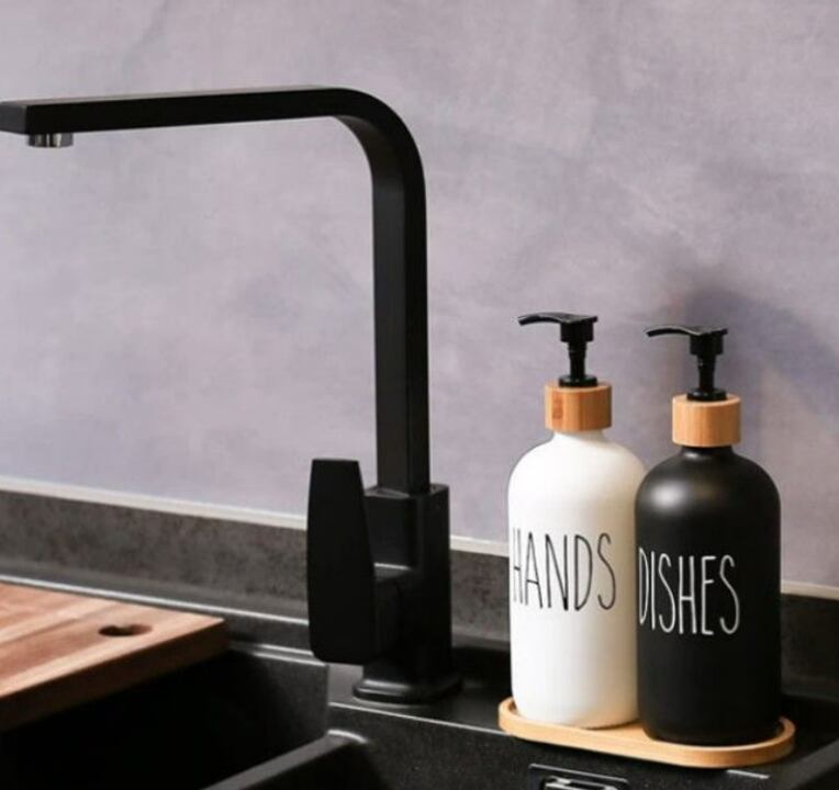 キッチンや洗面台をおしゃれに整える、洗剤容器ディスペンサー3点セットです。
