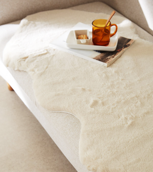 シルキーなエコファーを使用したソフトソファパッド&ミニラグは、ふわふわの柔らかい肌触りが魅力です。