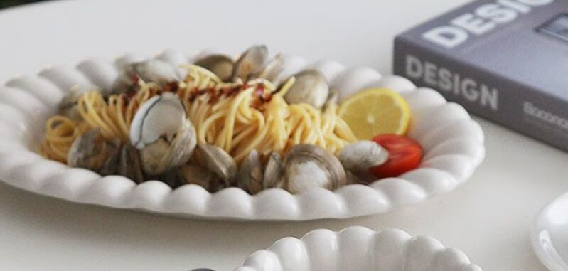 陶磁器の質感:しっかりとした重みと滑らかな表面が、料理の美しさをより際立たせます。