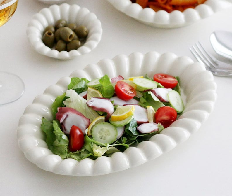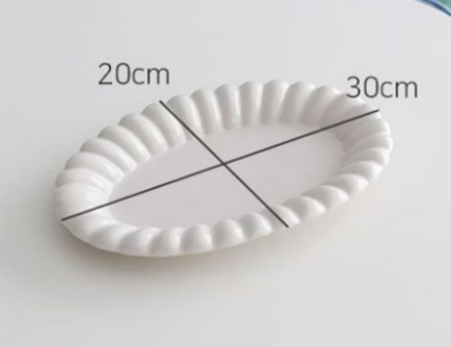 20×30cmの楕円形:大きめサイズで、サラダボウルやメインディッシュにも使いやすい万能プレートです。