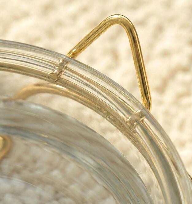 透明ガラスの美しいボウルとゴールドフレームが組み合わさった、上品でモダンなペット食器セットです。