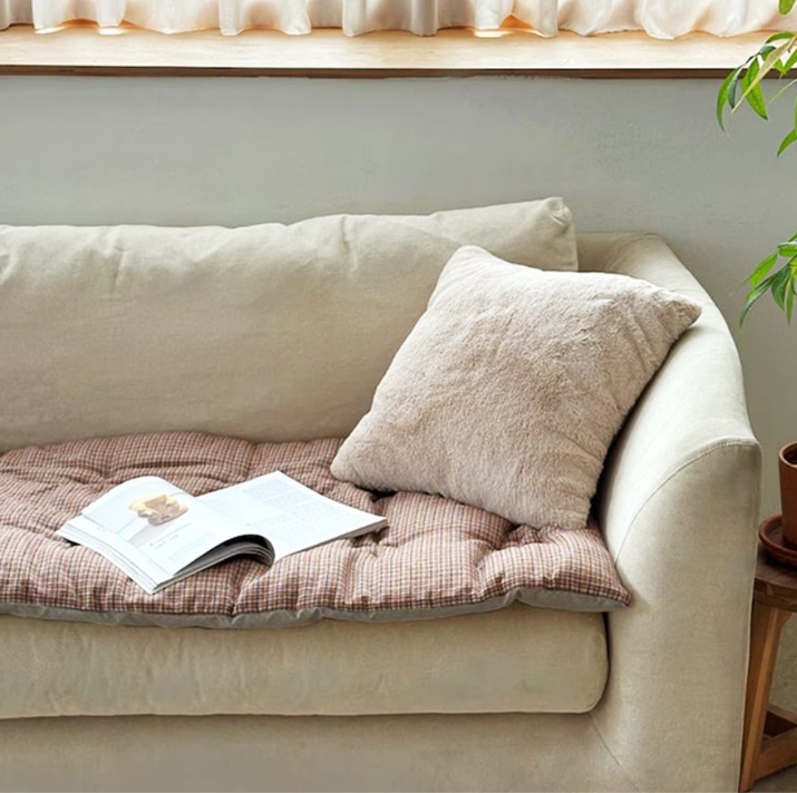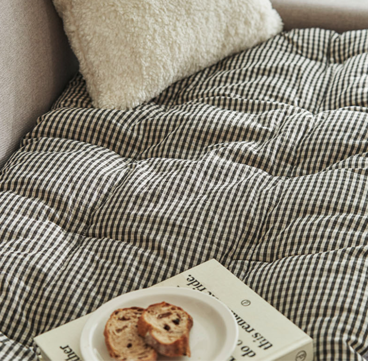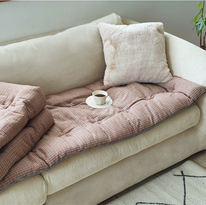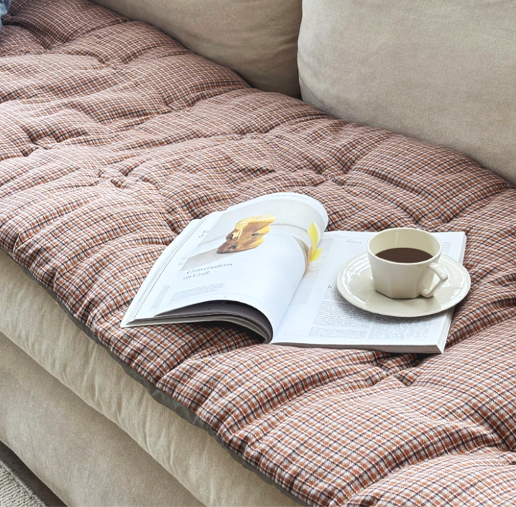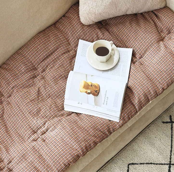 ・ナチュラルなチェックデザイン:落ち着いたチェック柄がインテリアに馴染み、温かみのある空間をつくります。