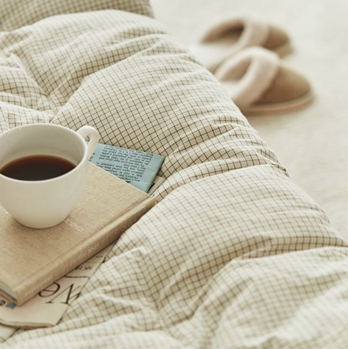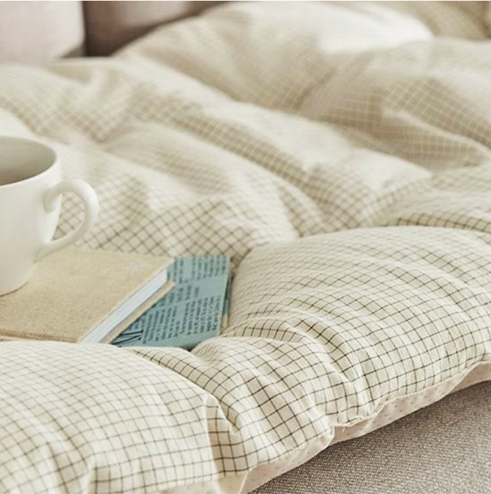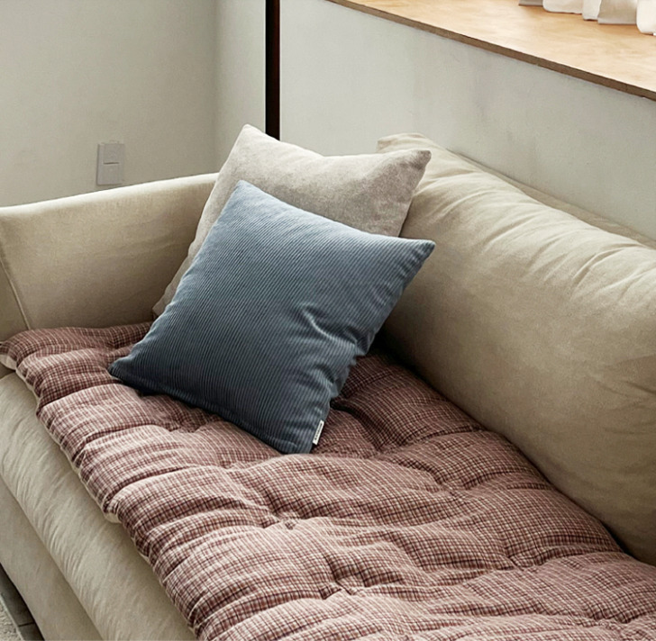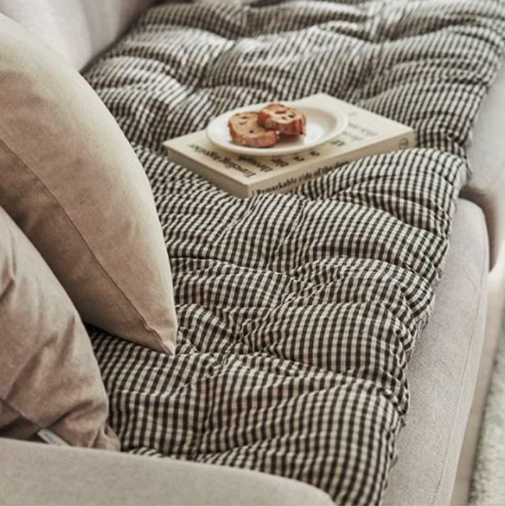 ・ナチュラルなチェックデザイン:落ち着いたチェック柄がインテリアに馴染み、温かみのある空間をつくります。