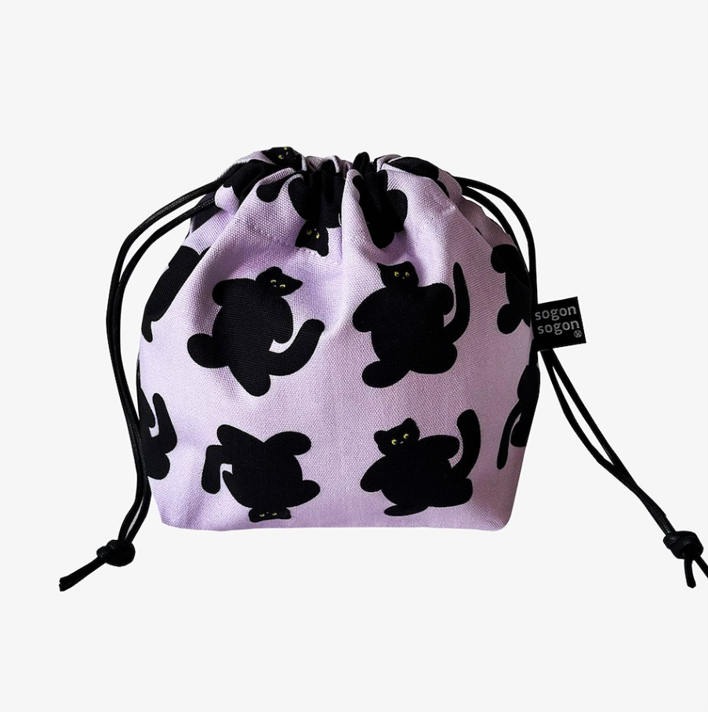 韓国雑貨 巾着ポーチ 紫 黒猫 かわいい 化粧品 小物入れ バッグ