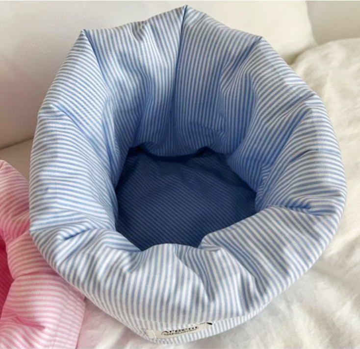 韓国雑貨 ファブリックバスケット ストライプブルー 小物収納 Mサイズ