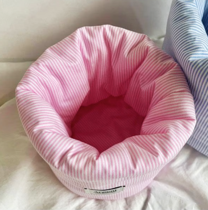 韓国雑貨 ファブリックバスケット ストライプピンク 小物収納 Sサイズ