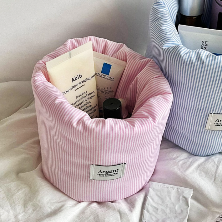 このストライプピンクバスケットなら、実用性とデザイン性を両立した収納空間がつくれます。