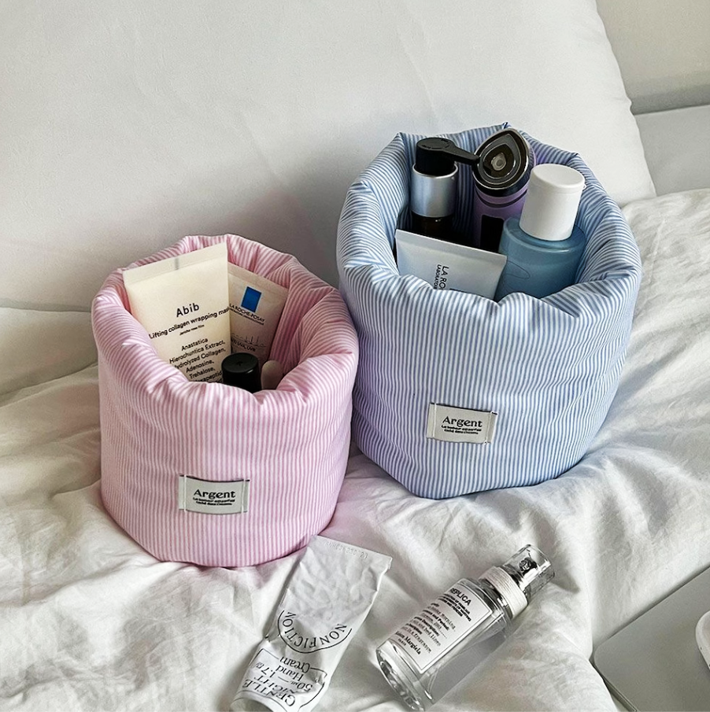 化粧品や雑貨をすっきりまとめられ、2サイズ展開で使い分けもしやすいアイテムです。