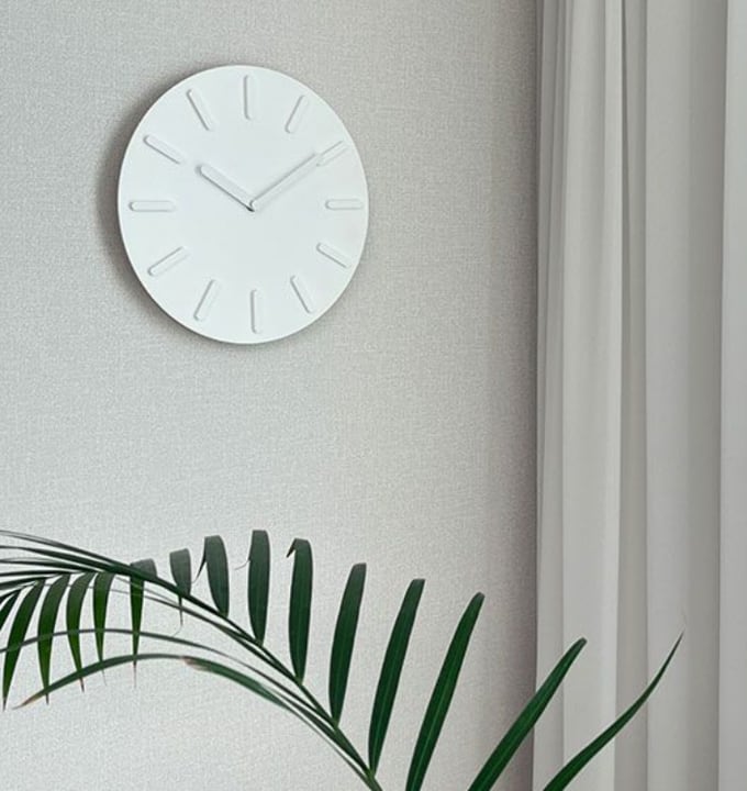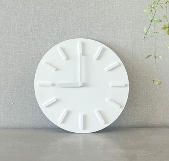 静音×立体デザインのホワイト壁掛け時計なら、シンプルで上質な空間づくりを手軽に実現できます。