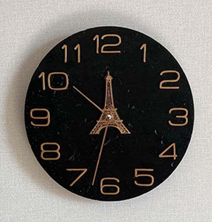 韓国雑貨 壁掛け時計 静音 エッフェル塔柄 黒色 モダン おしゃれ