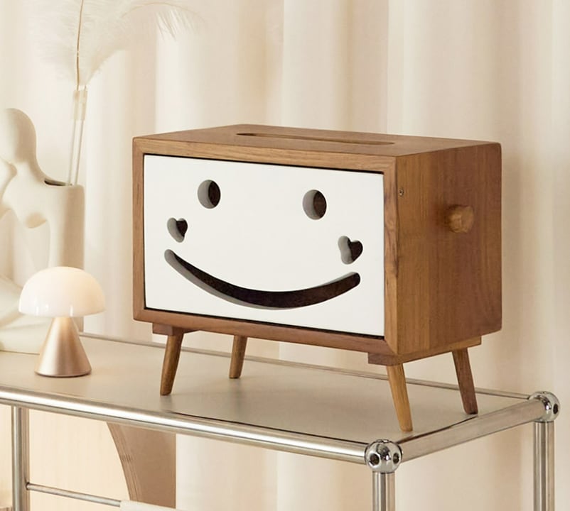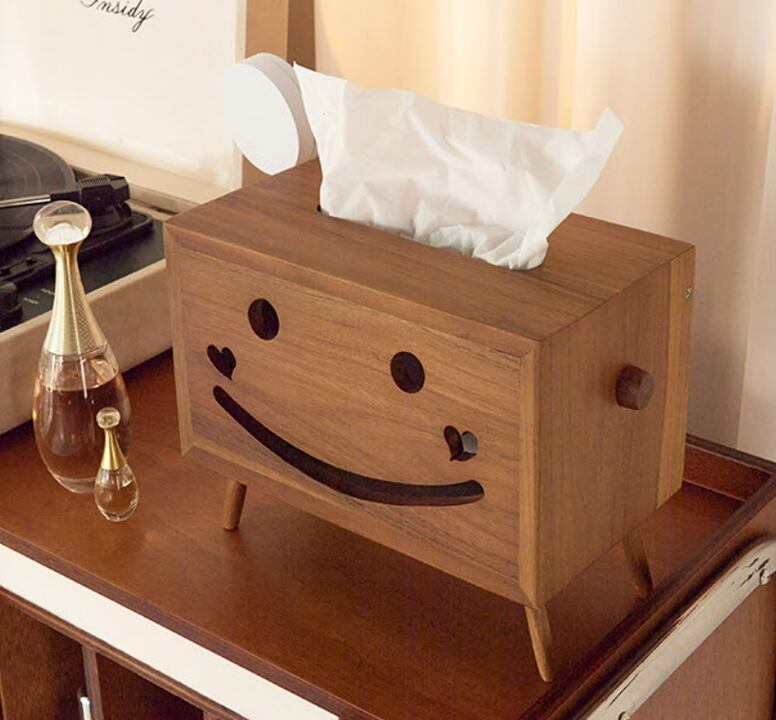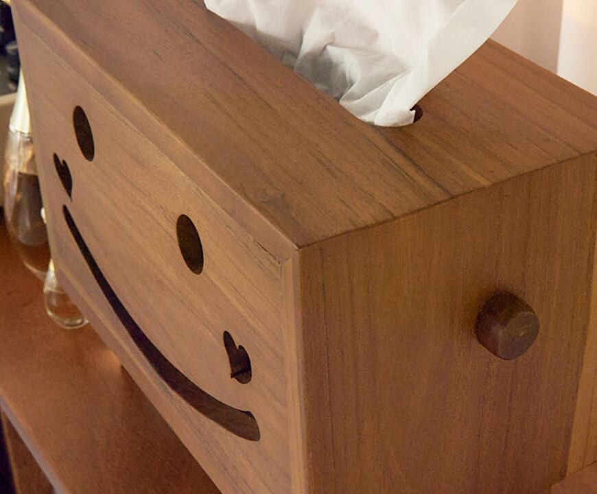 木の温もりを感じるスマイルデザインが魅力のティッシュケースです。