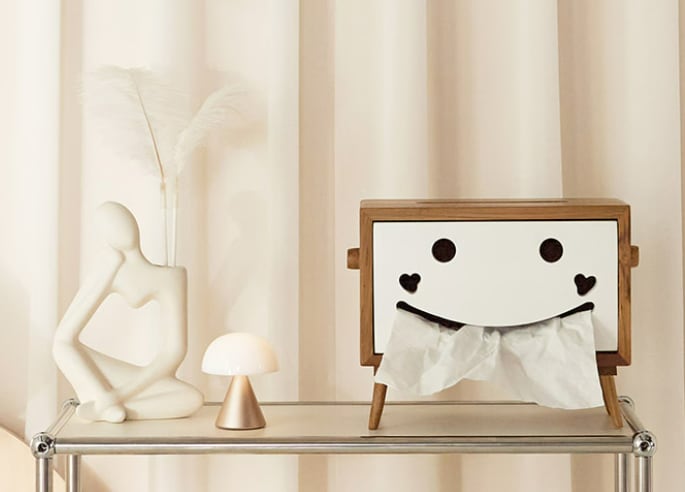 スマイルティッシュケースなら、置くだけでお部屋の雰囲気がふんわり明るくなります。