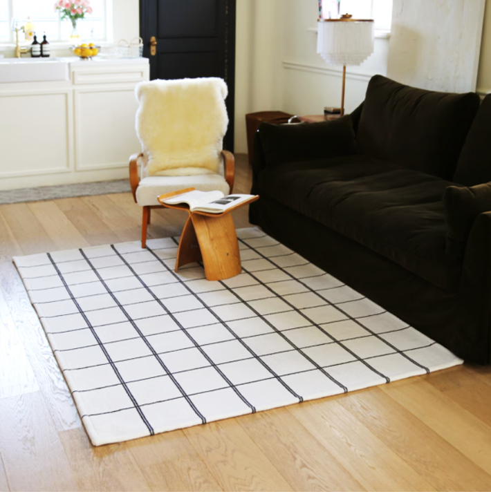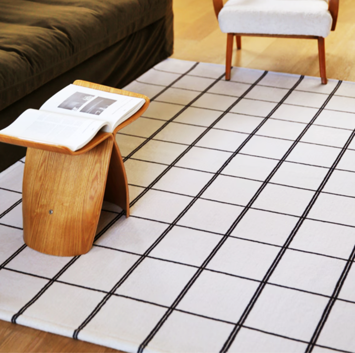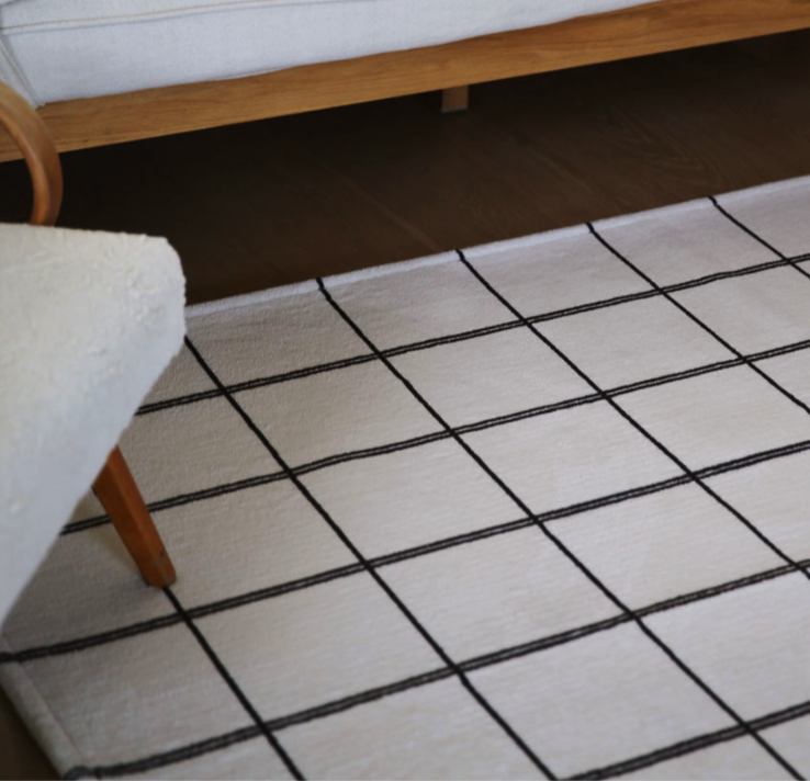 洗練されたグラフチェック柄が空間をスタイリッシュに見せるインテリアラグです。