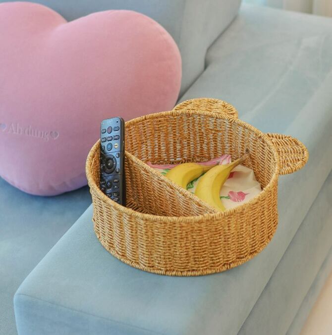ナチュラルなラタン素材を使用した、かわいい熊耳デザインの小物入れバスケットです。